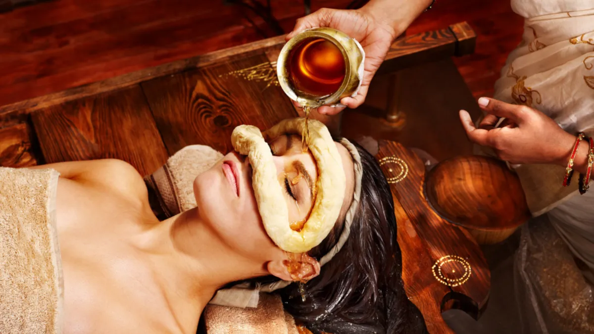 Terapia profunda de relajación donde un hilo continuo de aceite tibio se vierte sobre la frente. Especial para insomnio, ansiedad y sobrecarga mental.